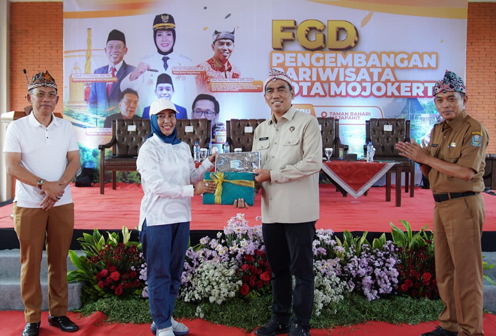 FGD tersebut diikuti berbagai pemangku kepentingan pariwisata, mulai dari pengelola hotel, pelaku ekonomi kreatif, pengusaha travel, media, influencer, pengelola destinasi wisata, rumah sakit, akademisi, duta wisata, hingga kelompok sadar wisata (Pokdarwis) se-Kota Mojokerto.