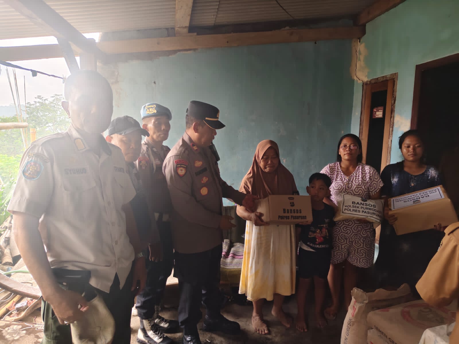 Polres Pasuruan Salurkan Bansos untuk Warga Terdampak Sambaran Petir di Desa Cowek