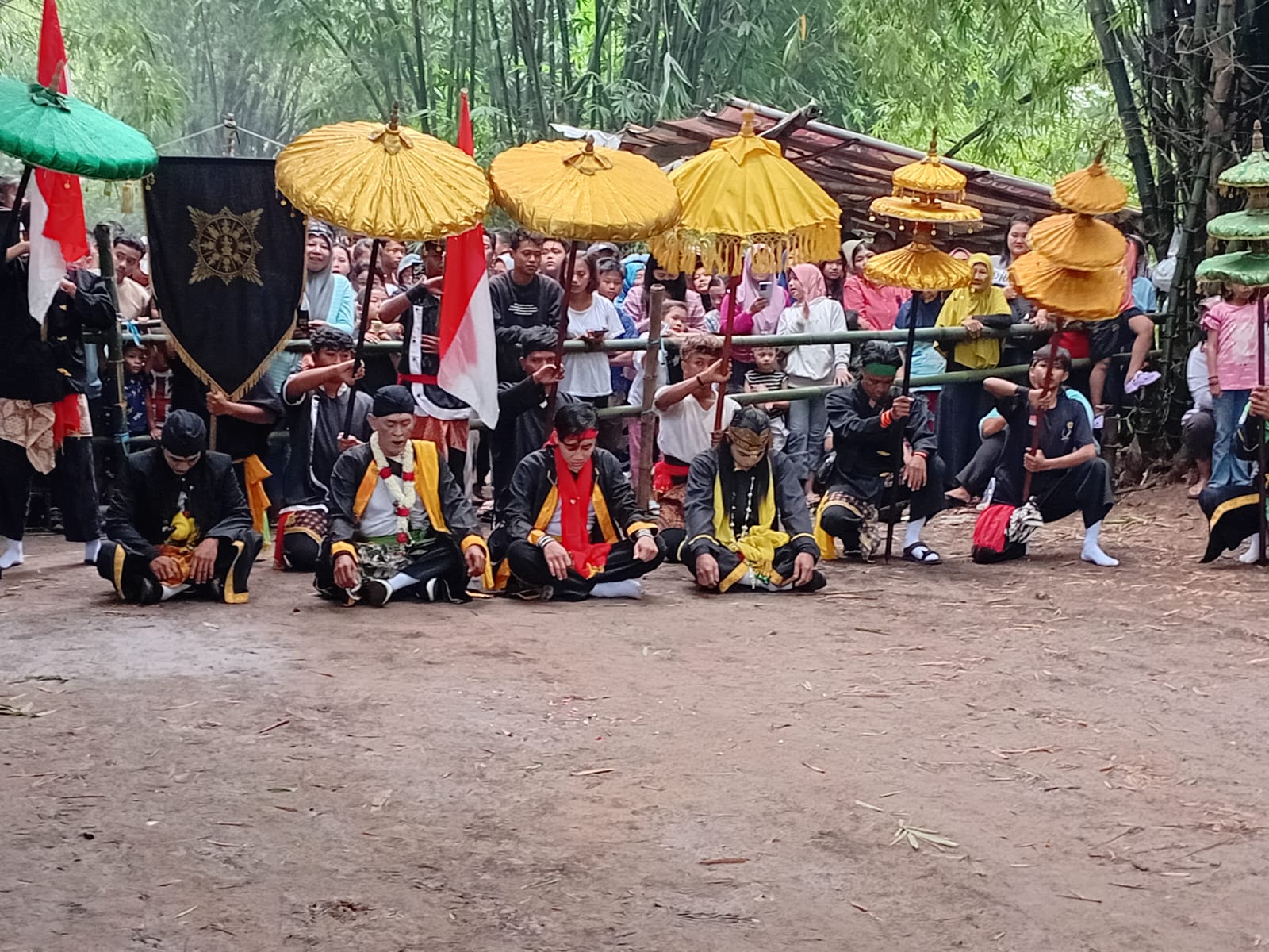 Sejak pagi hari, masyarakat dari berbagai usia telah memadati area pasar kebon. Mereka antusias menyaksikan prosesi Bantengan yang sarat makna spiritual, sejarah, dan nilai kebersamaan. Para pelaku seni tampil mengenakan busana adat serba hitam dengan ikat kepala khas, diiringi simbol-simbol kebesaran berupa payung adat berwarna emas, bendera merah putih, serta atribut sakral yang mencerminkan kekuatan, perlindungan, dan penghormatan terhadap leluhur.