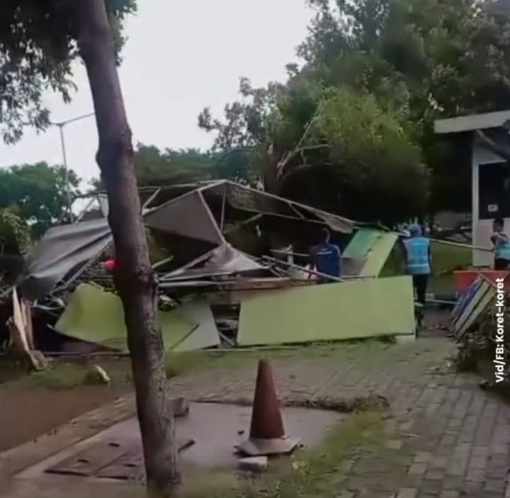 Sidoarjo – Angin puting beliung menerjang kawasan Terminal 1 Bandara Internasional Juanda, Kabupaten Sidoarjo, pada Kamis (8/1/2026) sekitar pukul 14.00 WIB. Selain mengganggu aktivitas bandara, fenomena cuaca ekstrem tersebut juga menyebabkan kerusakan sejumlah kendaraan roda dua dan roda empat, serta merusak rumah warga di sekitar lokasi.
