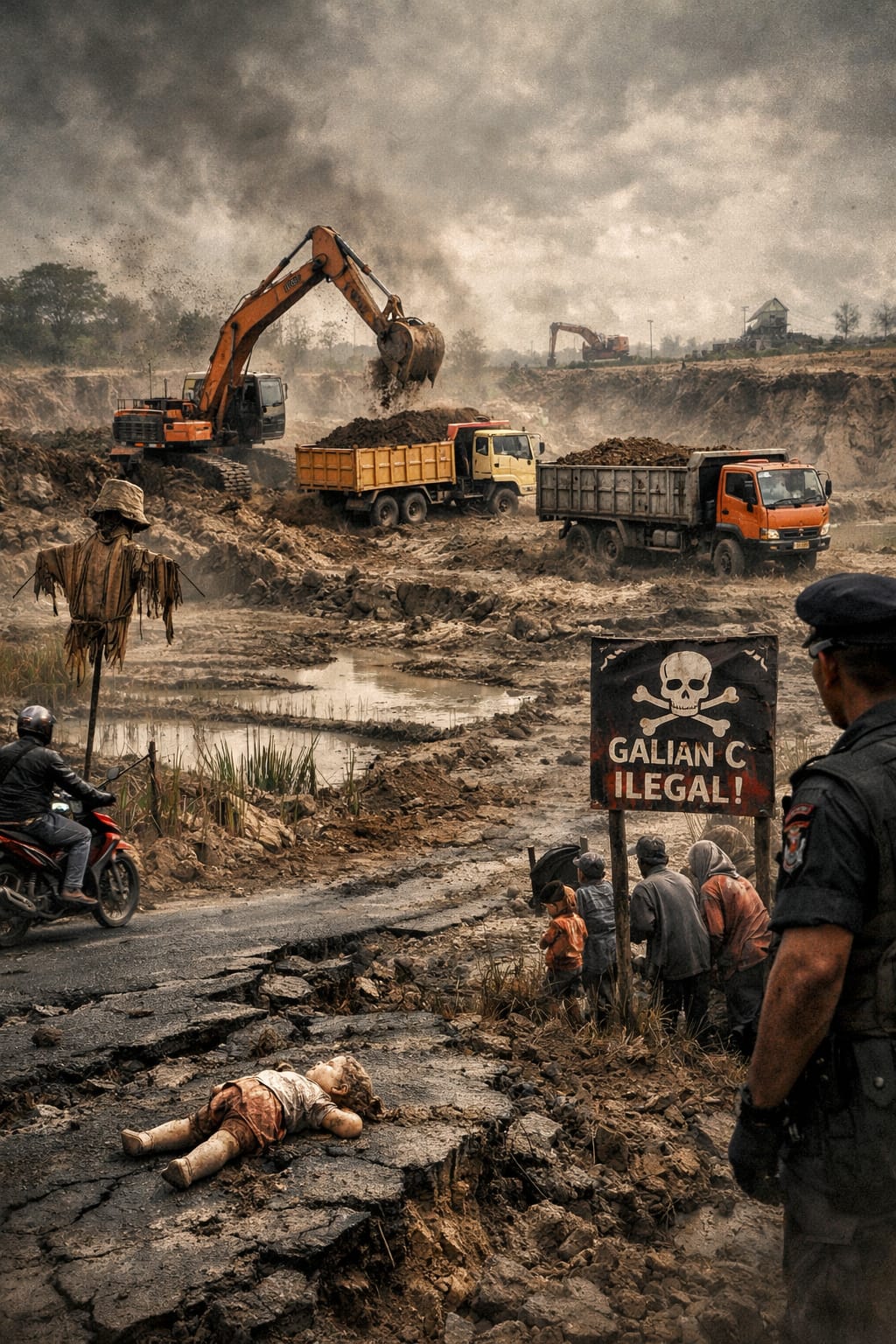 Maraknya aktivitas galian C ilegal di Gresik kian berubah menjadi mimpi buruk yang nyata. Di Desa Metatu, Kecamatan Benjeng, praktik penambangan liar diduga berlangsung terang-terangan, tanpa izin, tanpa ampun, dan tanpa rasa bersalah. Sawah-sawah yang semestinya menjadi sumber hidup warga kini dijadikan ladang jarahan, dikeruk hingga tinggal luka menganga.