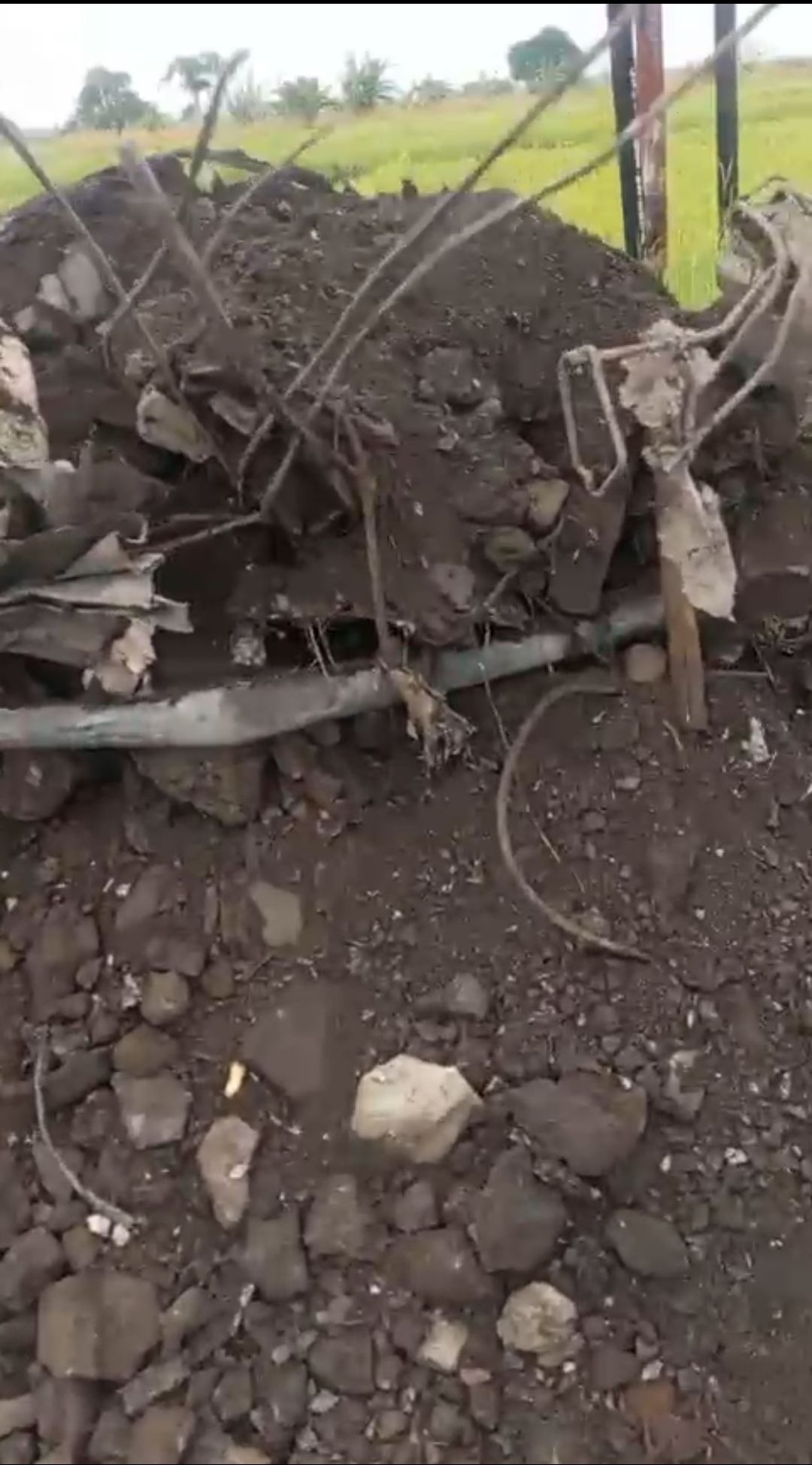 Limbah itu bukan sekadar puing; ia diduga berupa sisa plastik terbakar, abu hitam, dan material yang berpotensi berbahaya, yang seharusnya diperlakukan sebagai limbah khusus—bukan ditumpahkan di jalan desa.