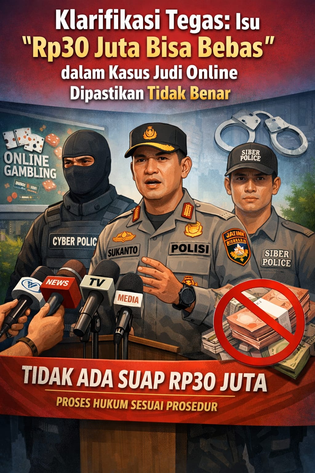 Klarifikasi Tegas: Isu “Rp30 Juta Bisa Bebas” dalam Kasus Dugaan Judi Online Dipastikan Tidak Benar