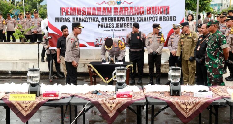 Polres Jember Musnahkan Rubuan Botol Miras Hasil Operasi Pekar di Bulan Ramadhan